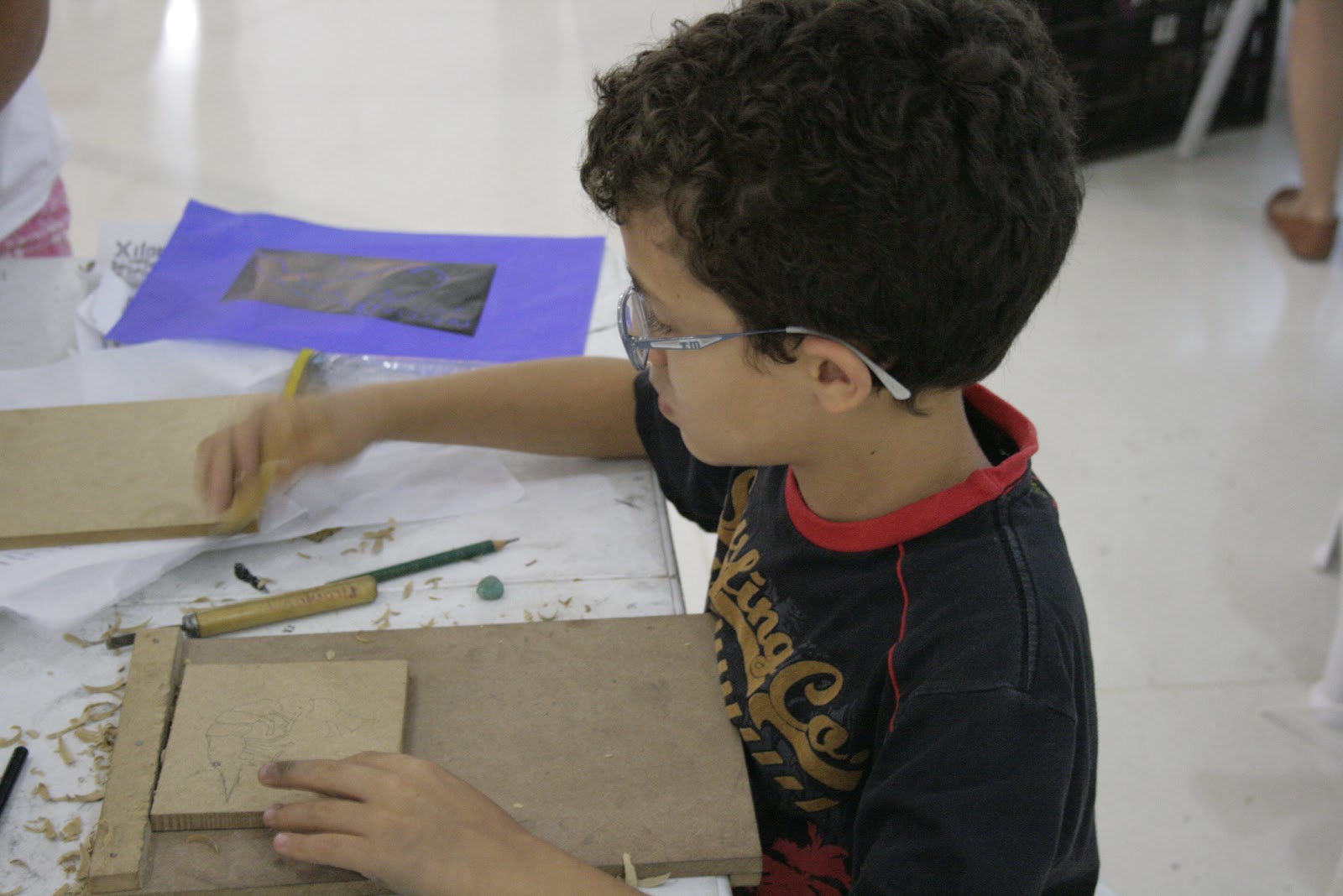 Oficina de gravura no shopping: gratuita; placa de mdf, tinta e impressão: por conta do xilomóvel; camiseta, 19,90 na hering; ter uma camiseta com estampa de uma xilo feita por você: NÃO TEM PREÇO!